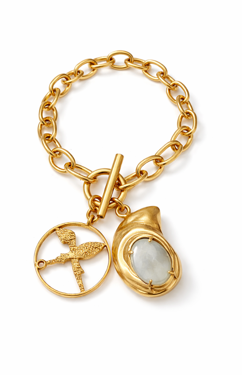 Rotimi Gele Charm Bracelet is made from polished brass and 18k micron gold-plated metal.